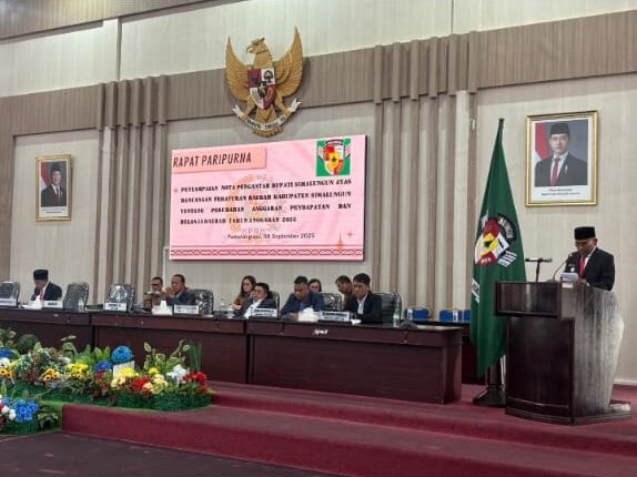 Penyampaian Pengantar Nota Keuangan ini berlangsung dalam rapat paripurna yang dipimpin Ketua DPRD, Sugiarto, bersama wakil ketua dan dihadiri anggota DPRD di Gedung DPRD Simalungun, Pamatang Raya, Sumatera Utara, Senin (8/9/2025).