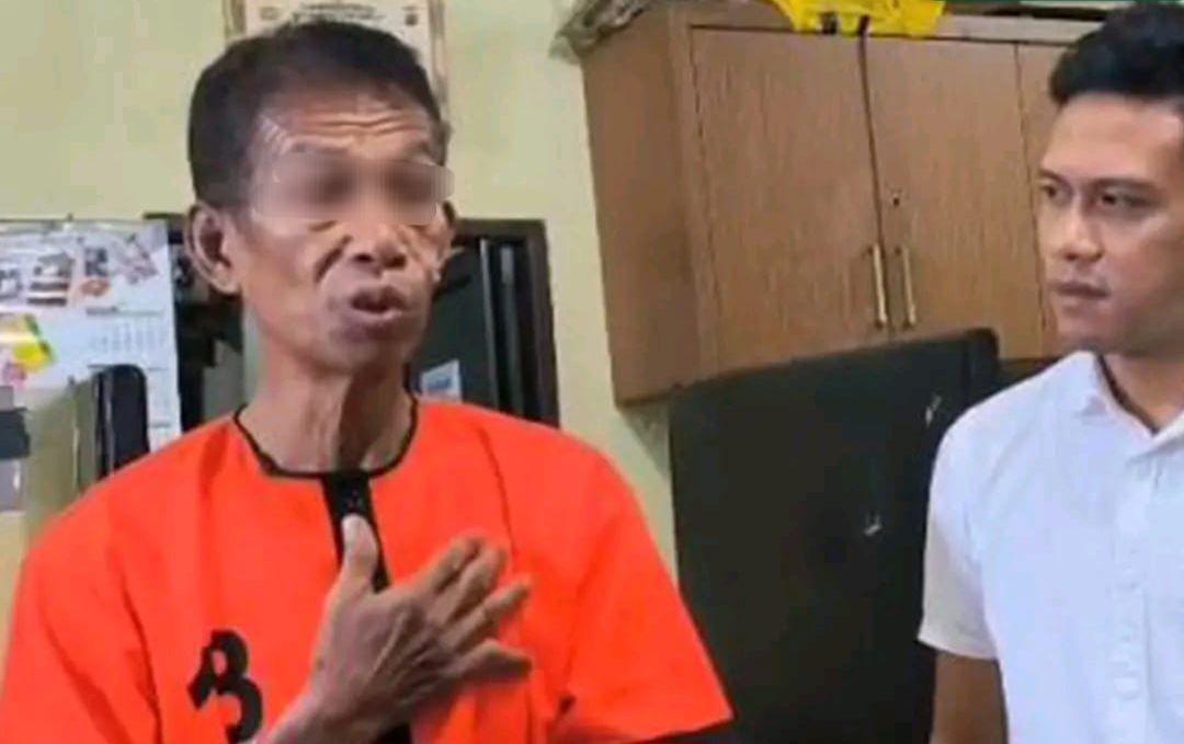 Dengan wajah lemas dan kepala tertunduk, Mawardi menjalani pemeriksaan di Polsek Medan Timur, Rabu (15/10/2025).