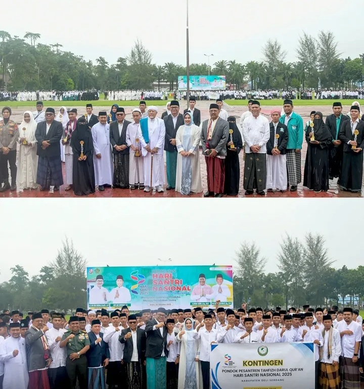 Upacara peringatan HSN 2025 digelar di Alun-Alun Pemerintah Kabupaten Deli Serdang, Rabu (22/10/2025), dan dipimpin langsung oleh Bupati Asri Ludin Tambunan.