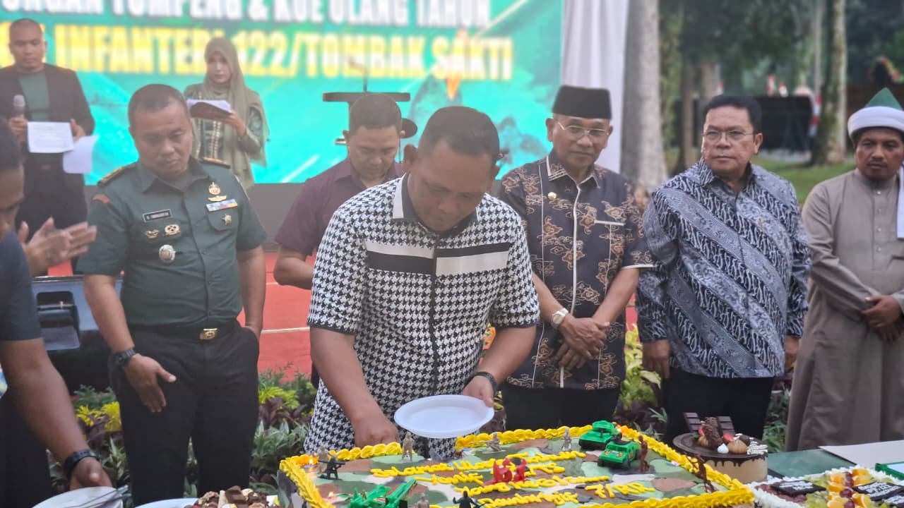 KransNews.com | Simalungun – Kepala Kepolisian Resor (Kapolres) Simalungun AKBP Marganda Aritonang, S.H., S.I.K., M.M. menghadiri acara syukuran Hari Ulang Tahun (HUT) ke-61 Batalyon Infanteri 122/Tombak Sakti, yang digelar di Garasi Yonif 122/TS, Jalan Melanthon Siregar, Silau Malaha, Kecamatan Siantar, Kabupaten Simalungun, pada Selasa (4/11/2025) sekira pukul 16.00 WIB.
