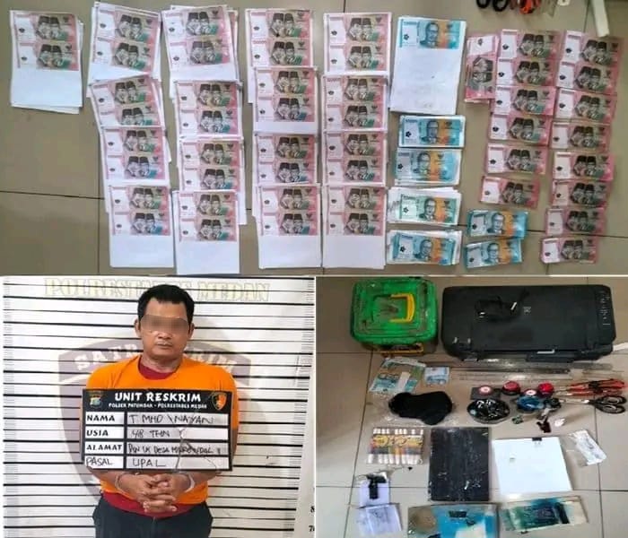 KransNews.com | Medan – Seorang pria bernama TM Nayyan (48), warga Dusun IX, Desa Marendal I, Patumbak, ditangkap polisi karena diduga mencetak dan mengedarkan uang palsu (upal). Penangkapan dilakukan setelah aparat menerima banyak laporan dari warga yang kerap menerima uang palsu di warung dan toko sekitar Patumbak.