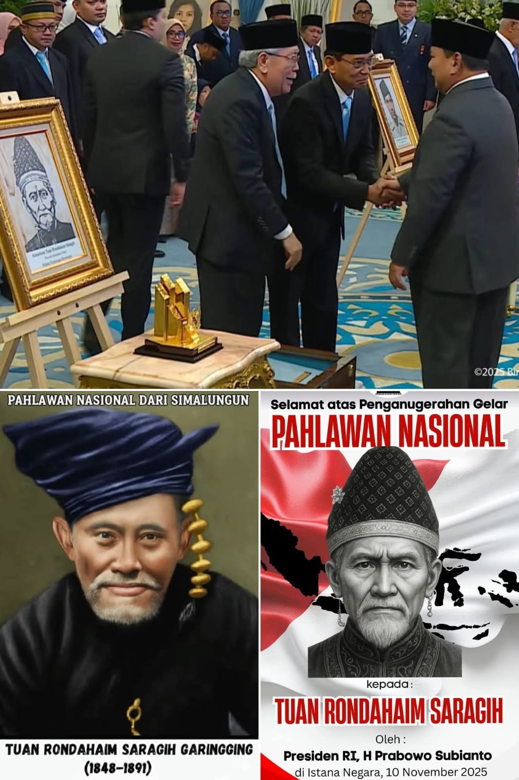 KransNews.com | Jakarta – Simalungun — Pemerintah Republik Indonesia resmi menetapkan sepuluh tokoh bangsa sebagai Pahlawan Nasional Tahun 2025, salah satunya adalah Tuan Rondahaim Saragih Garingging, Raja ke-14 Kerajaan Raya Simalungun, Sumatera Utara. Penetapan ini tertuang dalam Keputusan Presiden Nomor 116/TK Tahun 2025 yang ditandatangani langsung oleh Presiden Prabowo Subianto, Senin (10/11/2025).