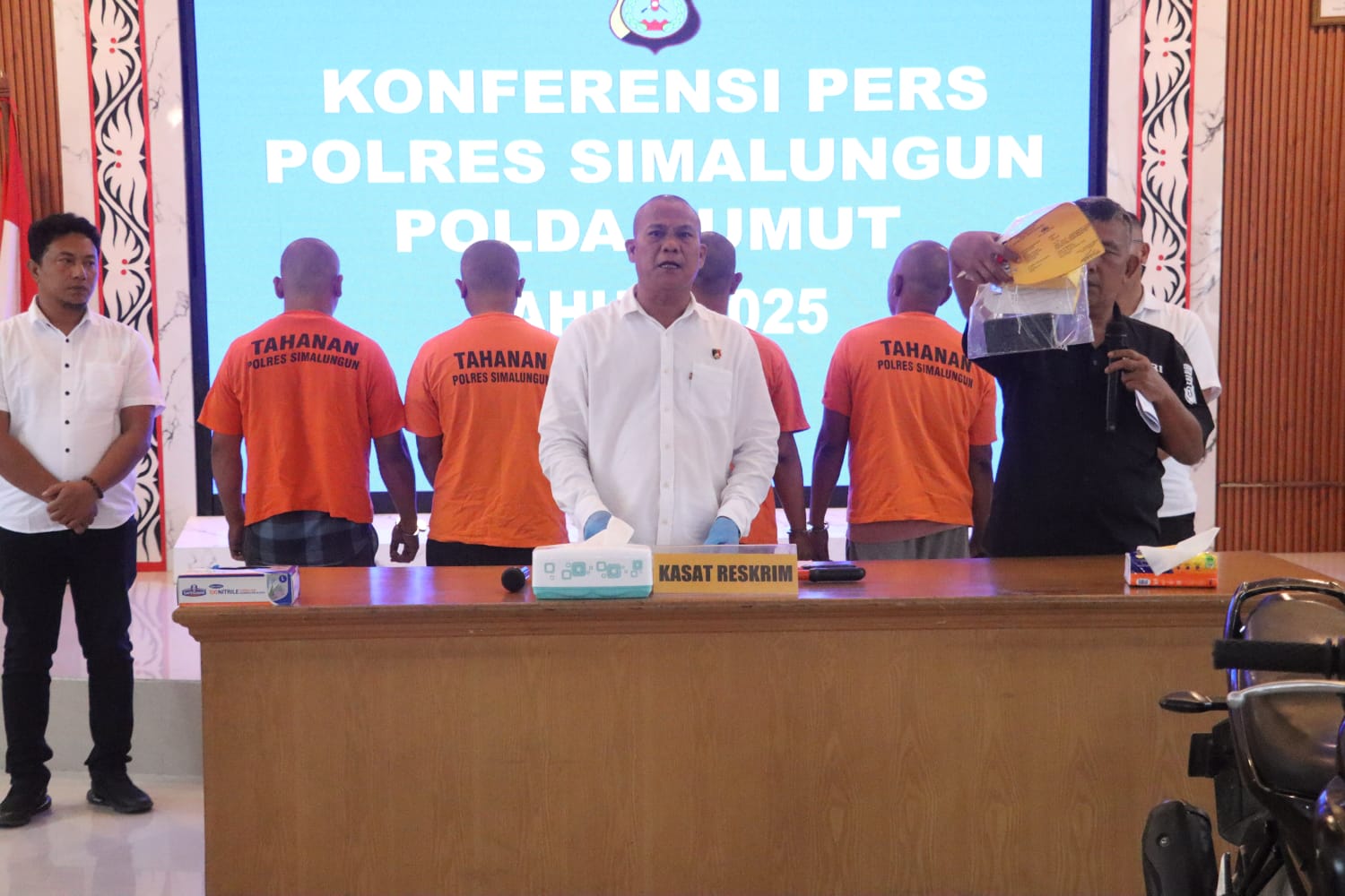 Kasat Reskrim Polres Simalungun AKP Herison Manulang SH memimpin konferensi pers pengungkapan kasus tersebut di Aula Andar Siahaan, Mapolres Simalungun, Rabu (3/12/2025) sekitar pukul 11.30 WIB. Empat tersangka dihadirkan bersama barang bukti yang cukup banyak sehingga menguatkan dugaan keterlibatan mereka.