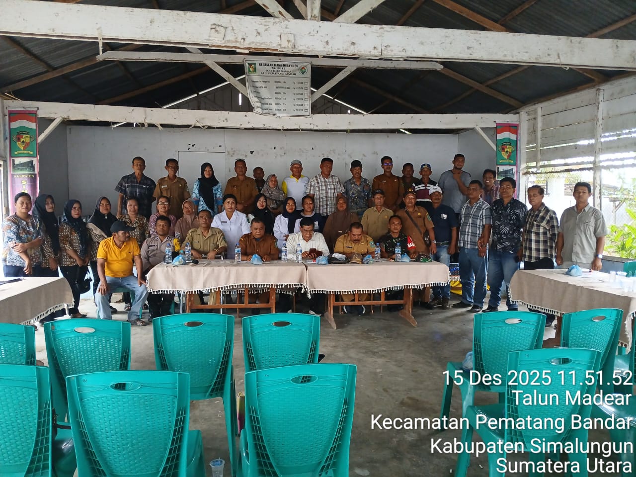 KransNews.com | Simalungun – Pemerintah Nagori Talun Madear menggelar Musyawarah Perencanaan Pembangunan (Musrenbang) sebagai forum partisipatif untuk menampung aspirasi masyarakat dalam perencanaan pembangunan tahun mendatang. Kegiatan tersebut dilaksanakan pada Senin (15/12/2025) sekitar pukul 10.30 WIB di Balai Nagori Talun Madear, Kecamatan Pematang Bandar, Kabupaten Simalungun.