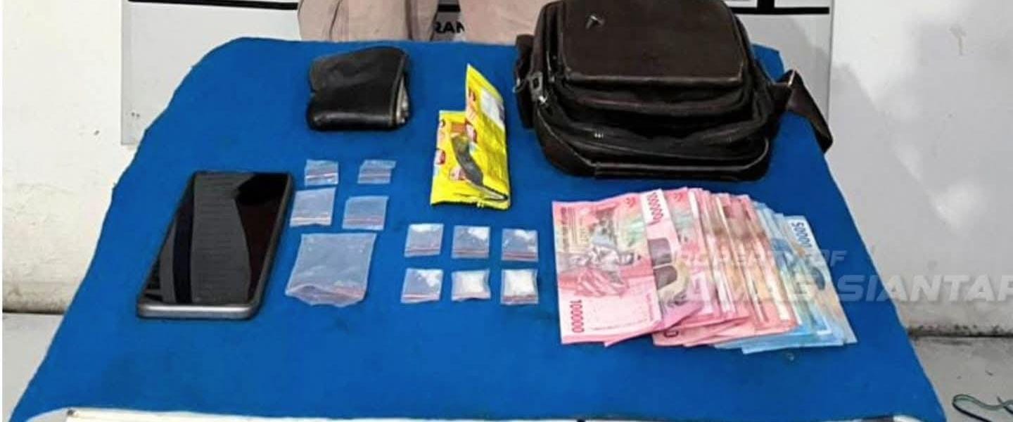 Saat dilakukan penangkapan, petugas menemukan barang bukti berupa 1 paket narkotika jenis sabu di atas aspal yang sebelumnya dijatuhkan dari tangan kanan tersangka. Selain itu, ditemukan 1 bungkus plastik nabati warna kuning berisi 1 plastik klip yang di dalamnya terdapat 5 paket sabu, serta 1 plastik klip berisi 3 plastik klip kosong yang dijatuhkan dari tangan kiri tersangka.