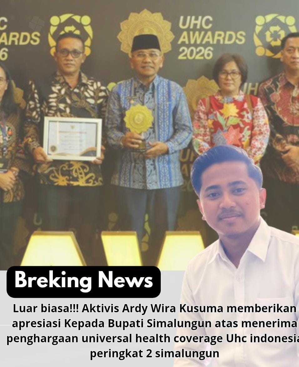 Tokoh pemuda Simalungun, Ardy Kusuma, menilai penghargaan UHC Award ini layak diberikan kepada Pemerintah Kabupaten Simalungun atas konsistensinya dalam menjalankan Program Jaminan Kesehatan Nasional (JKN).