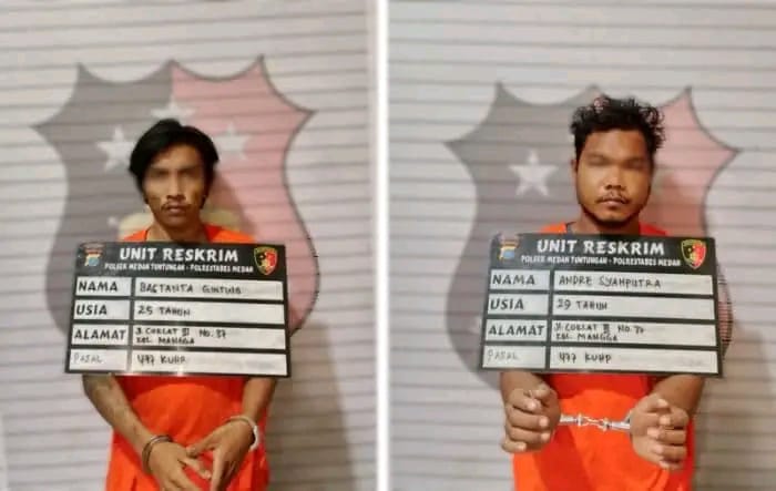 Berdasarkan laporan korban, petugas melakukan penyelidikan dan berhasil mengamankan kedua pelaku di tempat tinggal masing-masing. Saat ini, Bastanta Ginting dan Andre Syahputra telah ditahan di Polsek Medan Tuntungan guna menjalani proses hukum lebih lanjut.