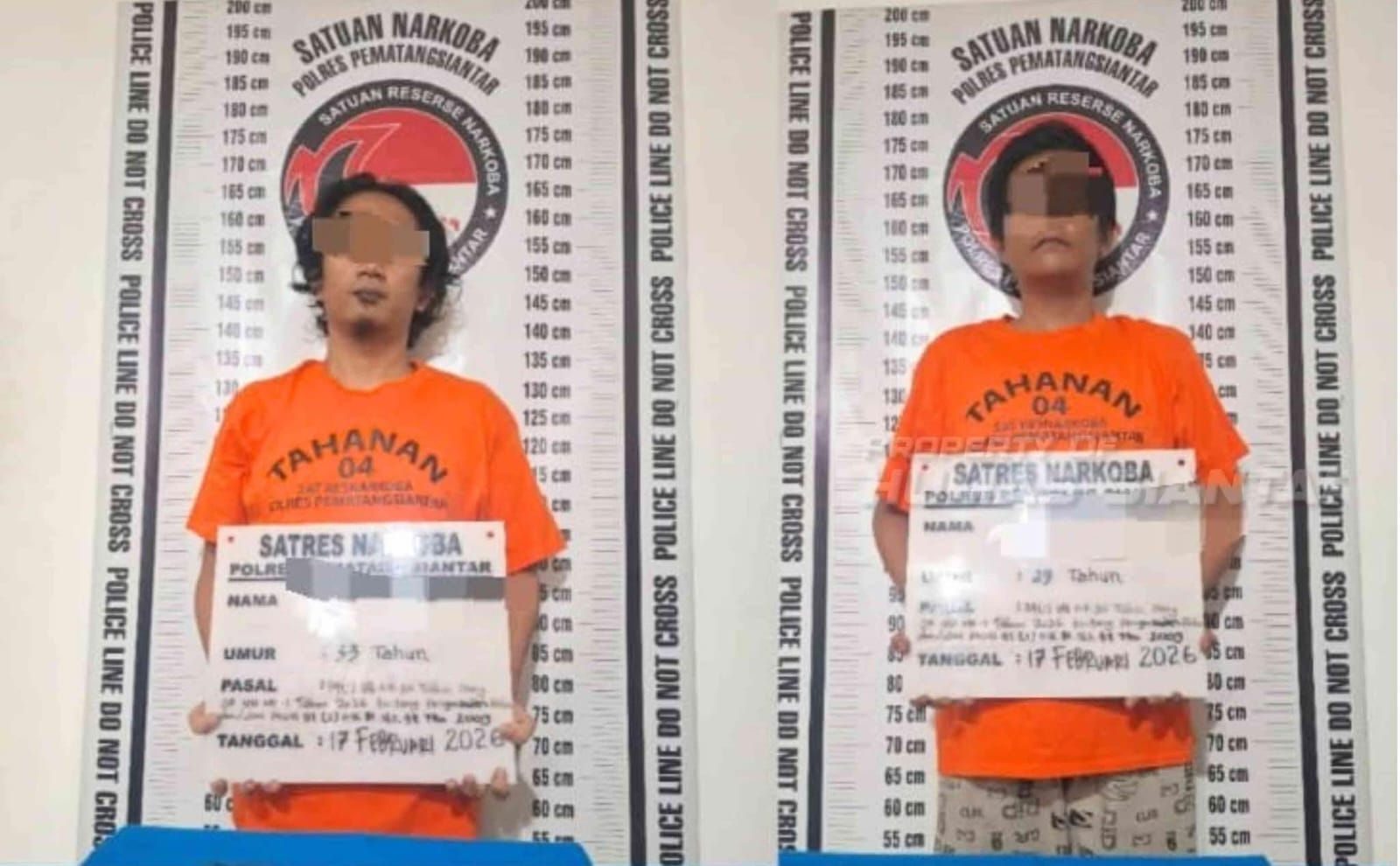Dua pria yang diamankan masing-masing berinisial MWV (30), warga Jalan Rakutta Sembiring Gang Baja, Kelurahan Pondok Sayur, Kecamatan Siantar Martoba, dan AD (36), warga Komplek Asrama Martoba, Jalan Rakutta Sembiring, Kelurahan Nagapita, Kecamatan Siantar Martoba.