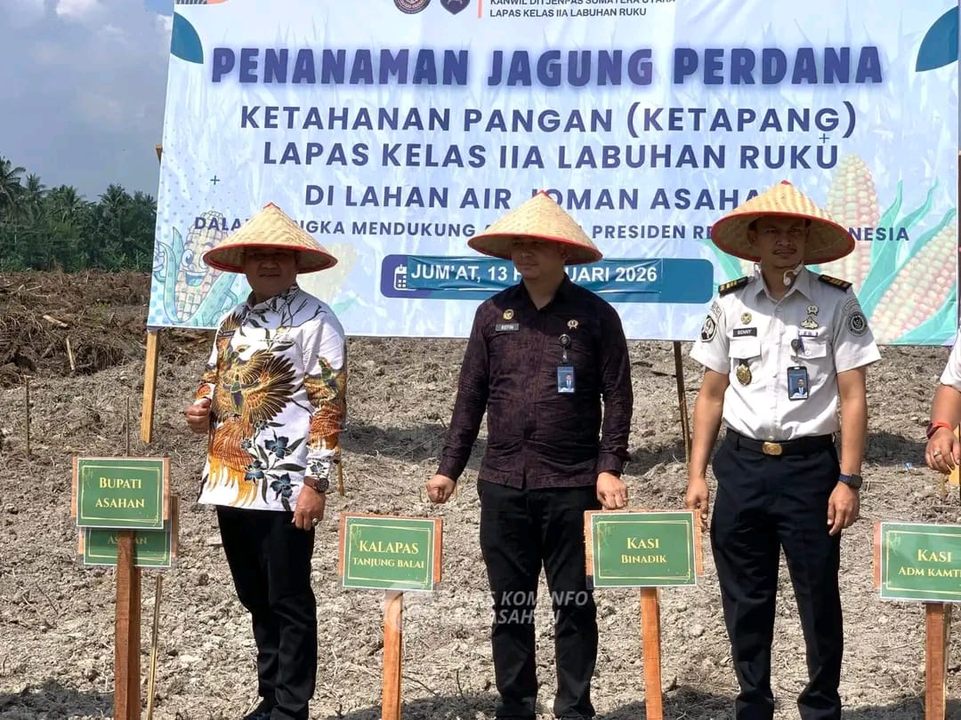 KransNews.com | Asahan — Bupati Asahan yang diwakili Wakil Bupati Asahan, Rianto SH MAP, menghadiri kegiatan penanaman jagung perdana dalam rangka program Ketahanan Pangan (Ketapang) yang dilaksanakan Lembaga Pemasyarakatan Kelas IIA Labuhan Ruku di lahan Air Joman, Kabupaten Asahan.
